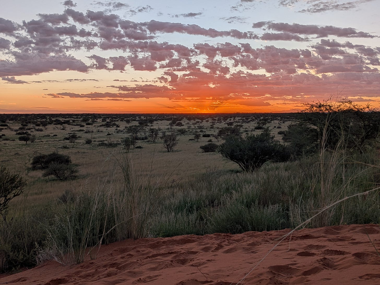 🐘 Am făcut două activități cu ghizii de la lodge: o tură de noapte în căutarea scorpionilor și o tură de dimineață (înainte de a pleca spre Sossusvlei), pentru a prinde răsăritul în Deșertul Kalahari și apoi pentru a căuta animale sălbatice.
