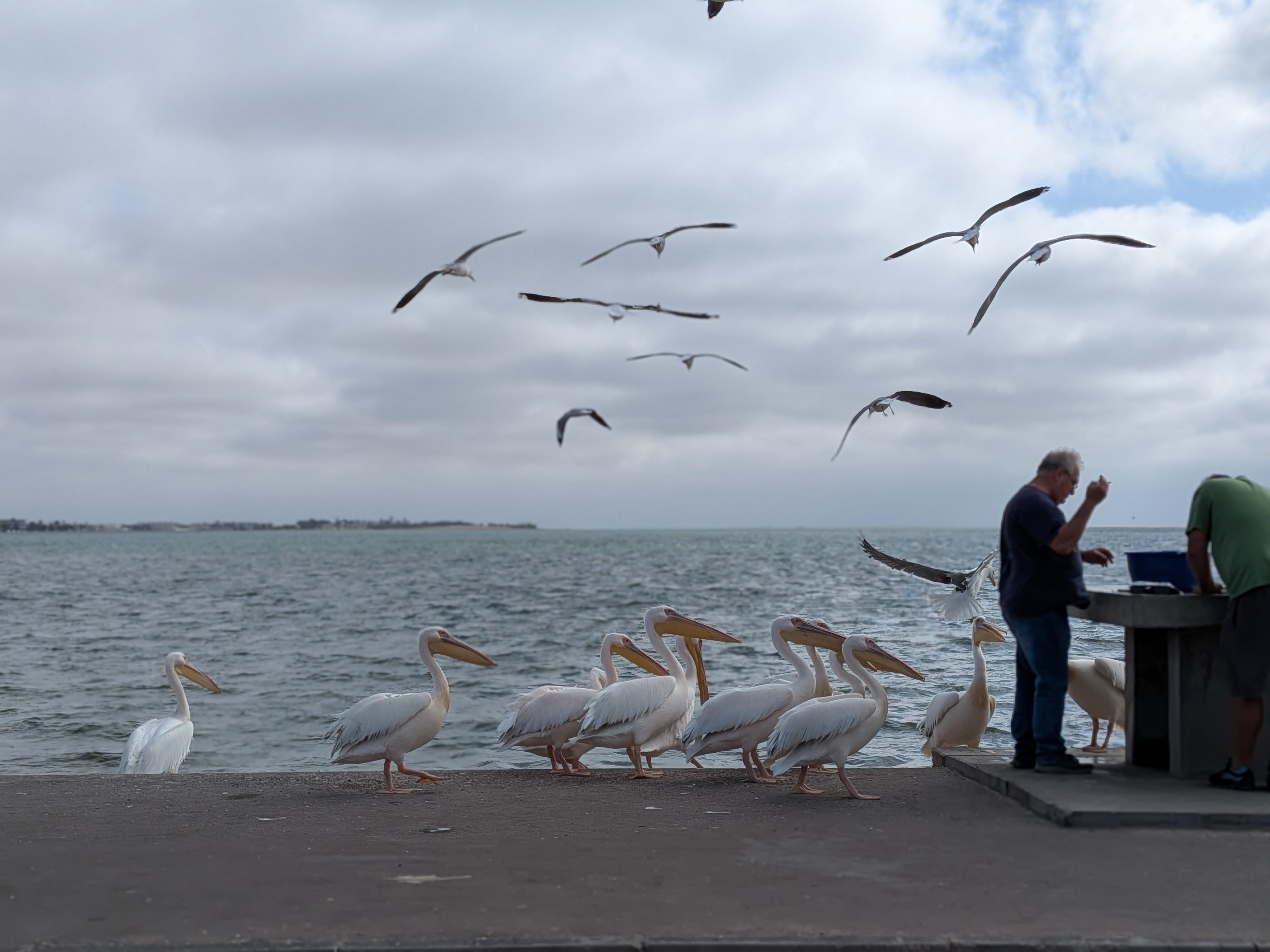 După două zile de dune, am plecat spre ocean, spre Swakopmund și Walvis Bay. Primele orașe din traseu în care nu ne era foarte clar ce vom găsi. Citisem despre Sandwich Harbour, flamingo, Skeleton Coast și foci, dar nimic foarte concret. Orașele ni s-au părut mai moderne și mai vibrante decât ne așteptam, cu cafenele de specialitate și restaurante cu mâncare bună. Tot aici am văzut cel mai clar diferențele dintre păturile sociale: cartierele celor înstăriți, cu peluze și verdeață, și cartierele celor mai săraci, împinse cât mai departe de oraș.