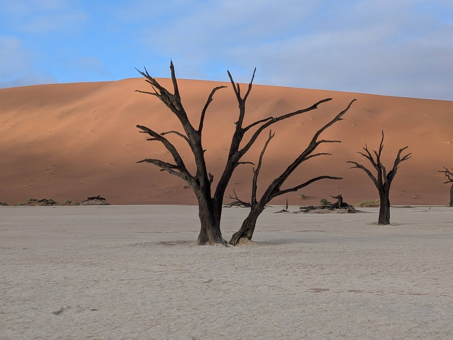 🐘 Am vizitat Deadvlei și am urcat pe dunele Big Daddy și Dune 45. Intrarea în parcul național costă 150 N$ de persoană și 50 N$ de mașină, pe zi. Este recomandat să ajungi în Deadvlei la prima oră a dimineții sau seara, pentru culori, temperaturi mai suportabile și pentru a evita mulțimea. Porțile parcului se deschid în jurul orei 05:00 dimineața (mașinile se aliniază la coadă de la 04:00) și se închid în jurul orei 20:00. Nu ai voie să rămâi peste noapte în parc.